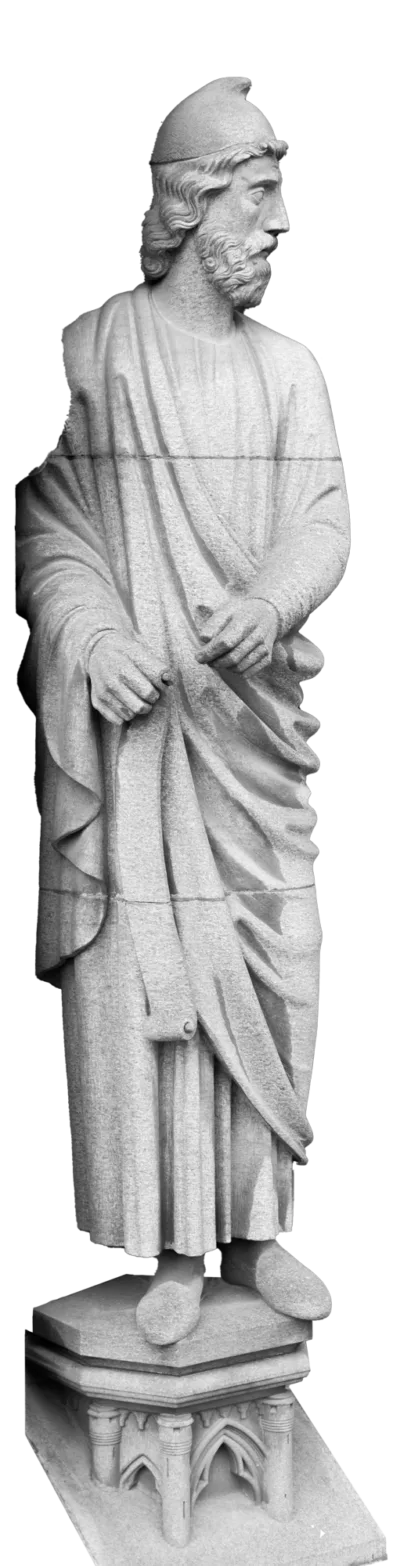 Statuen er modellert av Stinius Fredriksen og hugget av Gunnar Olsen i 1937.